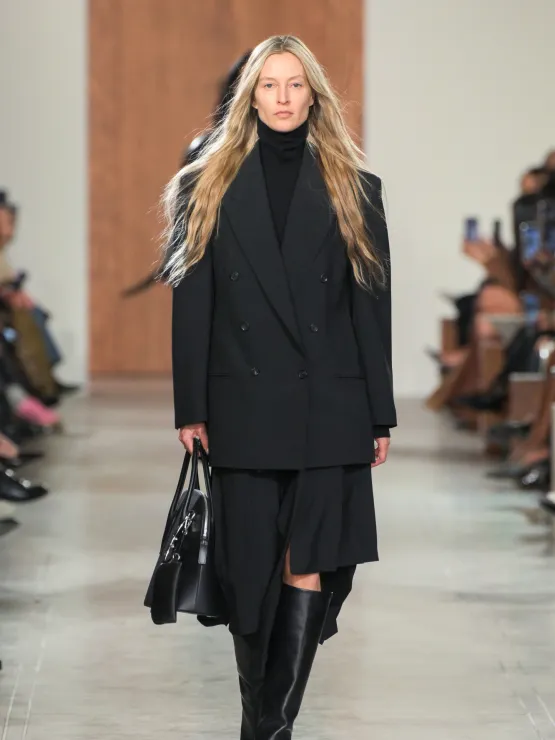 Michael Kors: Concluyó la semana con una colección que enfatiza la sencillez y el minimalismo. Presentó siluetas simples pero contundentes, incluyendo abrigos de lana drapeados, vestidos de cuero y blusas de seda, ofreciendo una visión sofisticada y sensual del poder femenino.